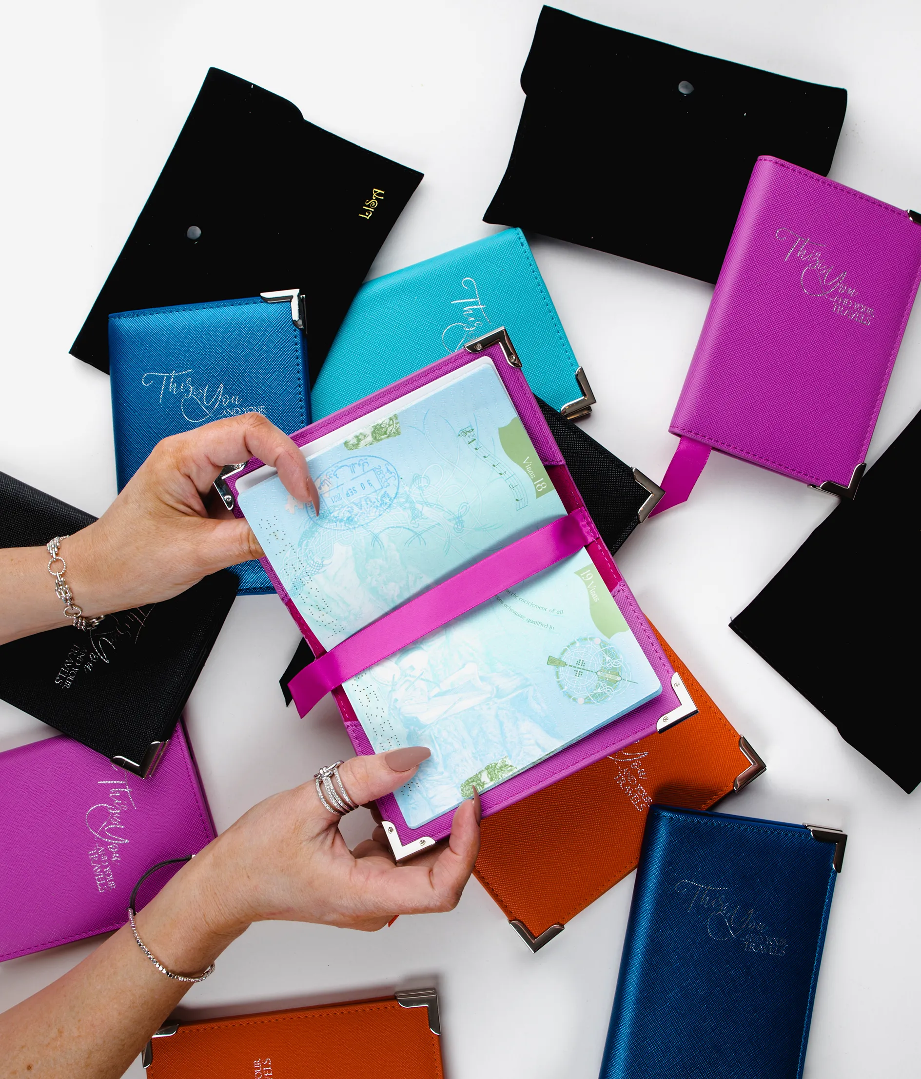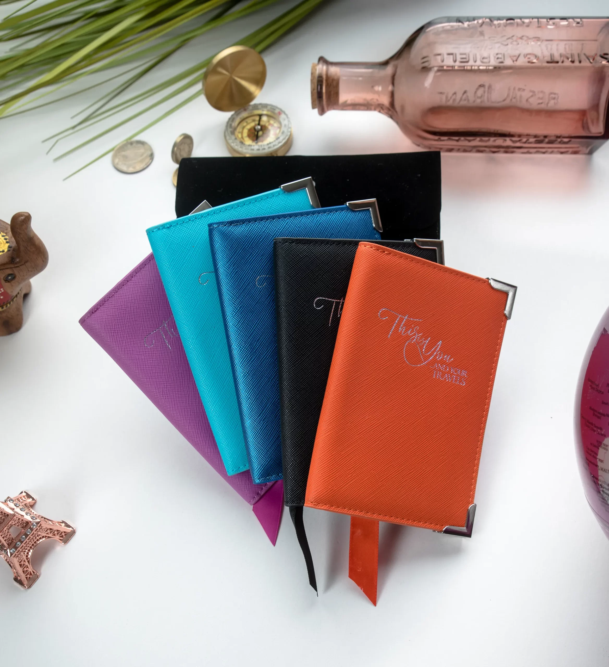 This Is You Passport Cover is designed for the minimalist traveller. Constructed with a PU leather exterior and a microfiber interior reinforced with colour-matched stitching, we used a double-thick leather exterior to add durability without compromising the feeling of a classic leather wallet. Our Modern Passport Wallet was built to stand up to the rigors of international travel. Our Passport Holders are the perfect way to keep your passport safe while you travel. The large space allows you to pair all of your essential travel documents in one place. Available in 5 different colours, with the option to personalize the little velvet pouch they come in, this beautiful leather passport will make you the envy of all your fellow passengers.
